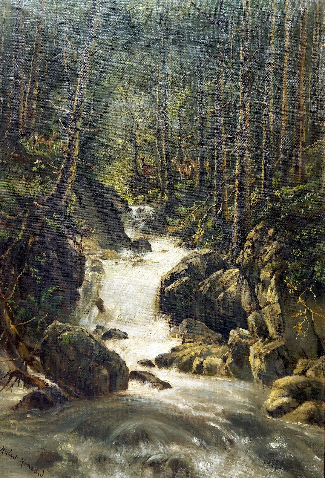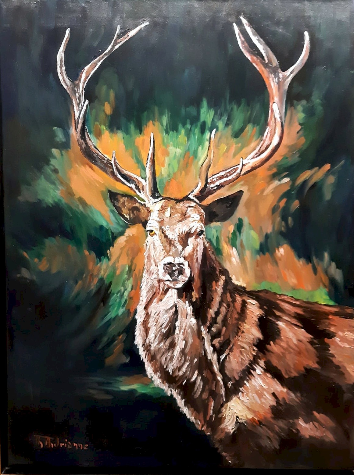 Le fusil non rangé dans son étui, les canons juxtaposés vers le ciel, la bouteille de vin, les espèces variées, la forêt à l’arrière-plan, le tout invite à la liberté de l’isolement. Cela nous amène à la contemplation de cet unique cadeau de la nature, ce présent de Dieu, ce Dieu présent. Nous sommes invités au retrait d’un monde vide et cadrant. Ce tableau veut nous soustraire des règles actuelles et nous offre l’immense espoir de pouvoir vivre un rêve de quelques instants, celui de renouer le lien avec la nature, se nourrir d’elle.