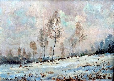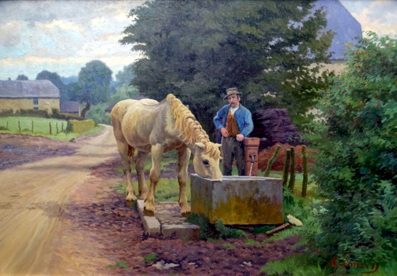 Neveu du prêtre Nestor REYMEN, Joseph REYMEN est connu pour la qualité de ses natures-mortes. Deux éléments de ce tableau caractérisent particulièrement bien notre artiste. Premièrement, le halo bleuâtre revient souvent dans son travail. Ensuite, l’isolement et l’indépendance le guident. Cela se ressent.