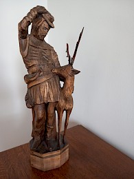 Le fusil, hors de l’étui montre toute la liberté, la confiance d’une époque. Nul besoin de port d’armes, de cadenas, de housse ou de coffre-fort. L’arme est centrale, libérée, canons vers le haut. Elle inspire la confiance et forme une croix avec les plumes de la queue du coq, qui, peut-être, raviront un passionné de montage de nymphe.