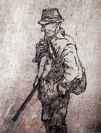 La chasse au petit gibier, seul avec son chien, permet d’arpenter bois, bosquets et champs en toute liberté. Le chasseur, armé de son fusil juxtaposé, cherche le petit gibier afin de le prélever pour se nourrir. Peut-être fouine-t-il chaque recoin afin de trouver autre chose ?