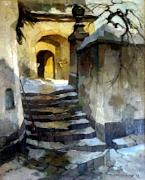 Alexandre DEBRUS fut exposé en 1876 à Philadelphie. On a aussi découvert un coffret en loupe de bois à décoration florale signé de sa main à la Villette à Paris. Cette scène à caractère local est donc l’œuvre d’un artiste dont la renommée internationale à l’époque était bien réelle. L’emblème de son existence se trouve dans la rose qu’il caresse lors de chaque coup de pinceau. Pour cette raison, on l’appellera « Peintre des roses » à tout jamais.