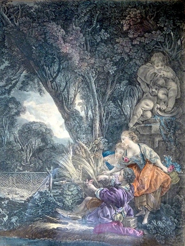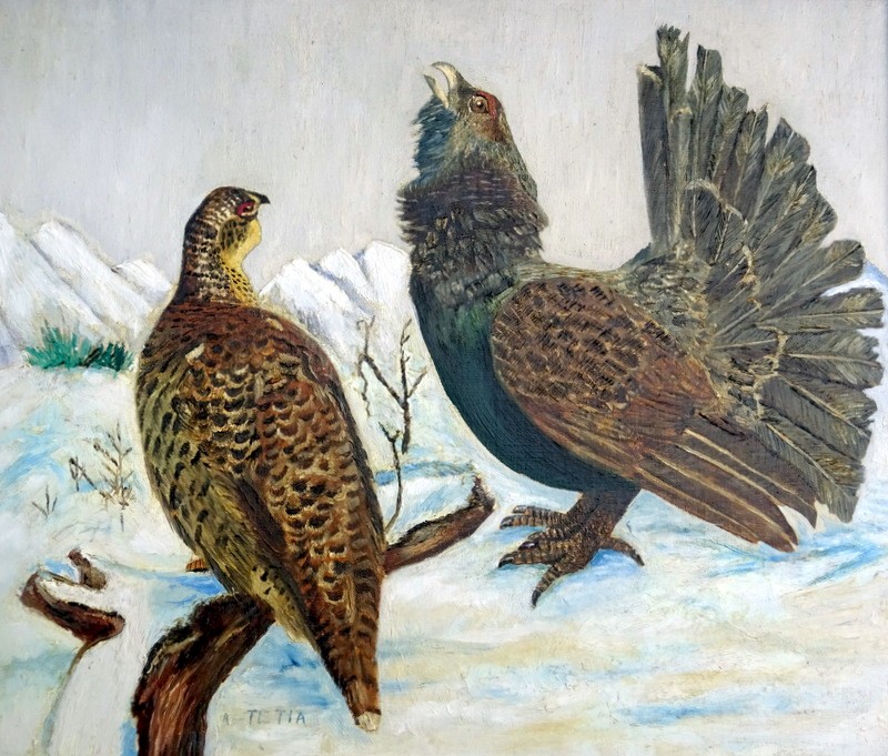 Pigeon biset, grive et rouge-gorge. Leurs morts animent ce tableau de la fin du 19ème siècle. Une scène d’un autre âge ?